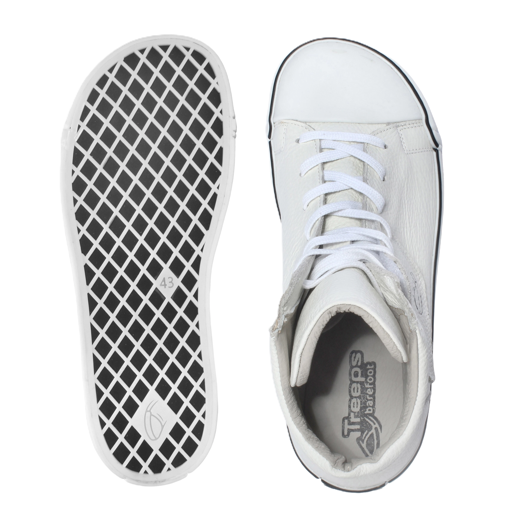 Treeps barefoot High All White to skórzane trampki barefoot klasy premium, które łączą naturalny ruch stopy z codziennym komfortem i swobodą chodzenia. Lekkie, elastyczne i zaprojektowane w duchu minimalizmu, doskonale sprawdzają się jako minimalistyczne buty barefoot do codziennego użytkowania – zarówno w mieście, jak i podczas aktywnego dnia. To wysokiej jakości obuwie barefoot,  które pozwala stopom pracować w naturalny sposób, bez ograniczeń i sztucznego usztywnienia, wspierając zdrową biomechanikę ruchu.